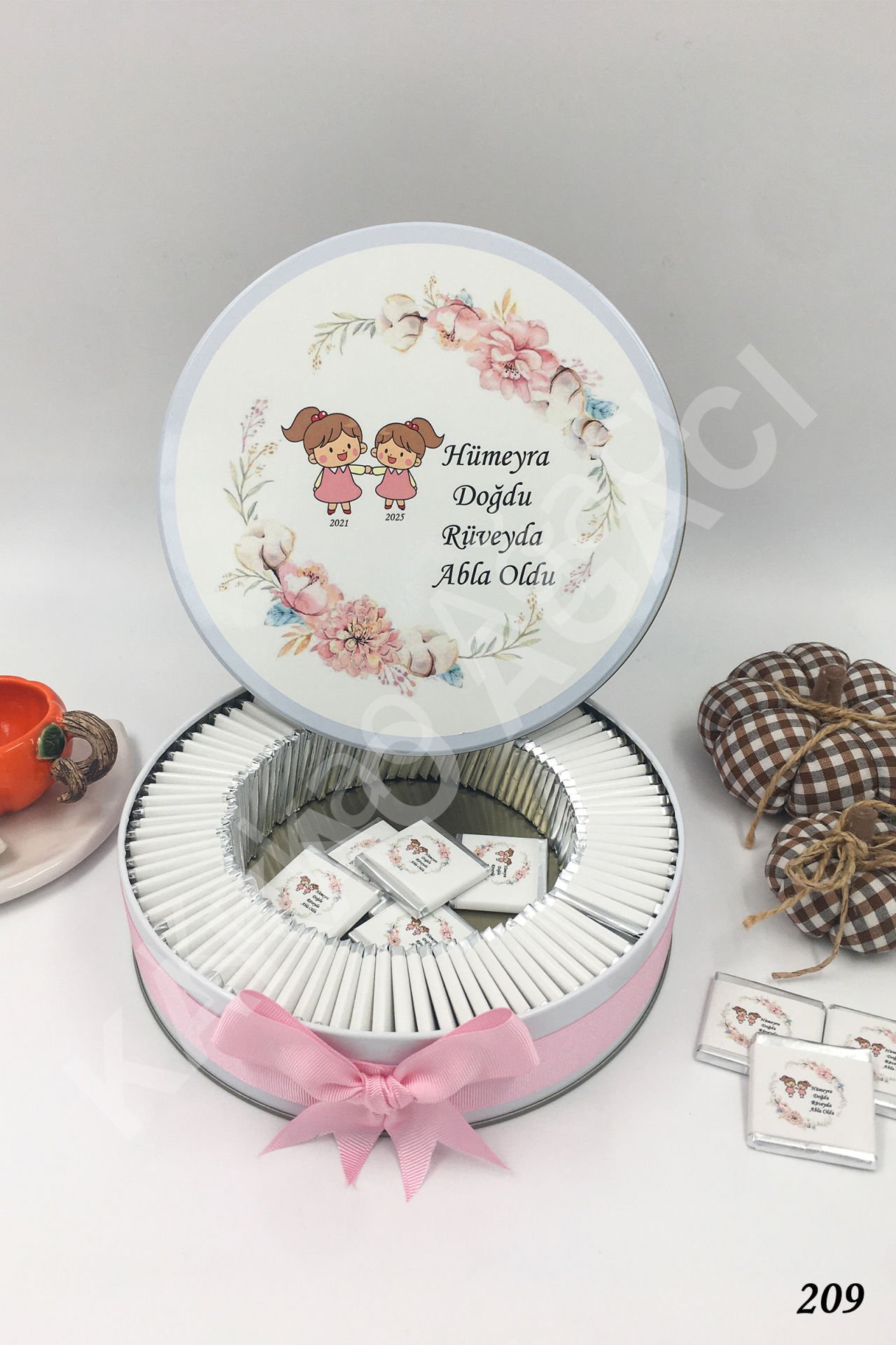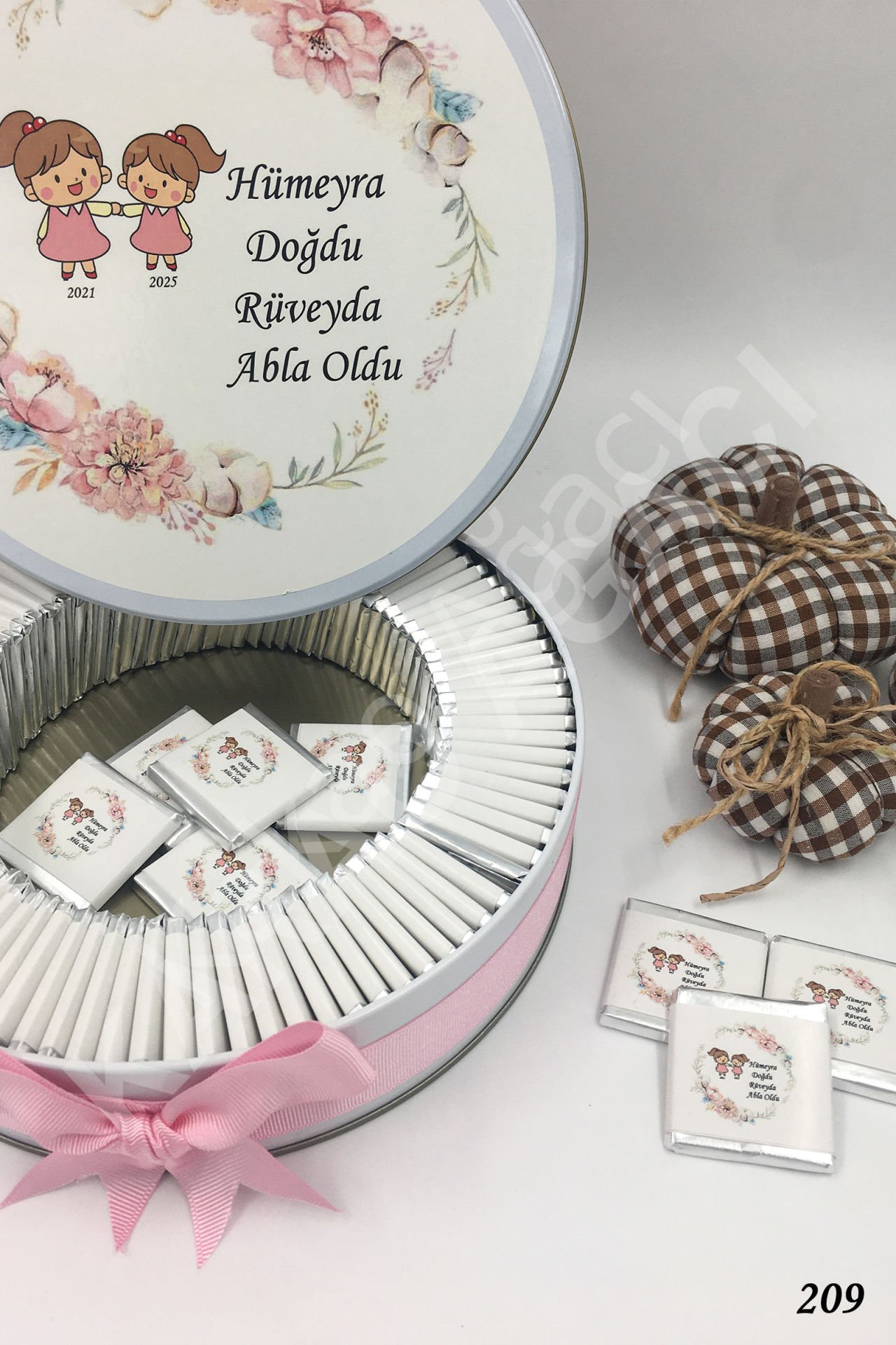 2 Kız Kardeş Metal Kutu İsme Özel Çikolata KA209