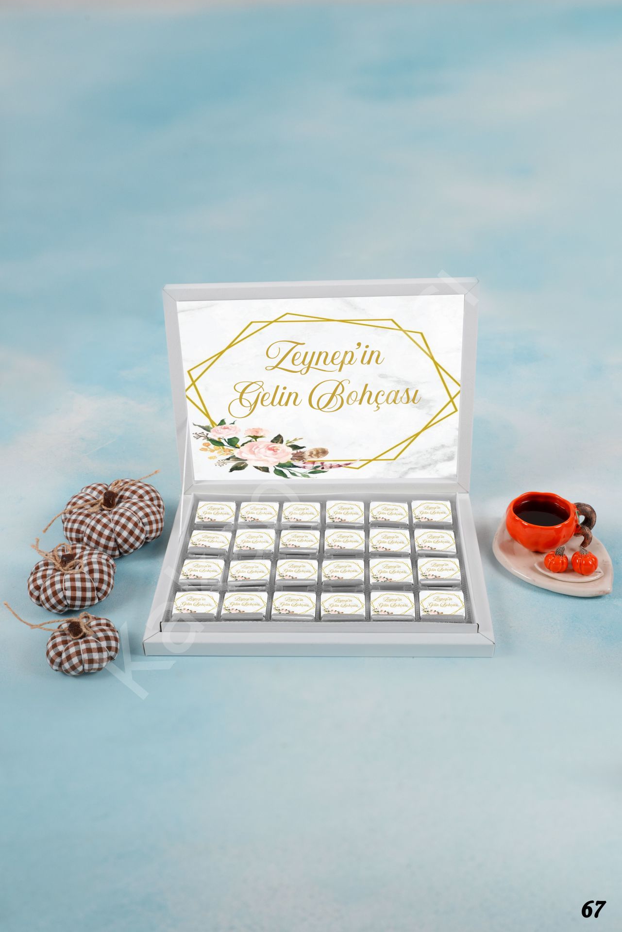 Altın Çerçeveli Çiçekli Bohça & Çeyiz Karton Kutu İsme Özel Çikolata KA67