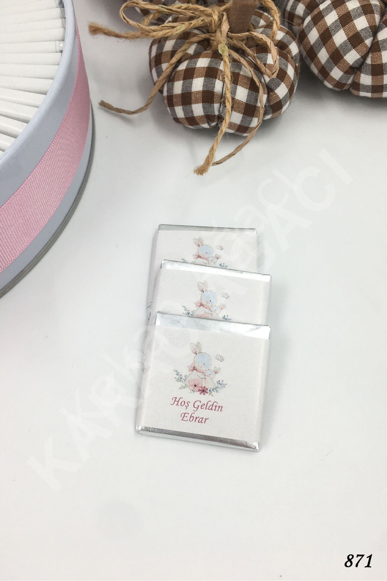 Anne & Yavru Tavşan Pembe Metal Kutu İsme Özel Çikolata KA871