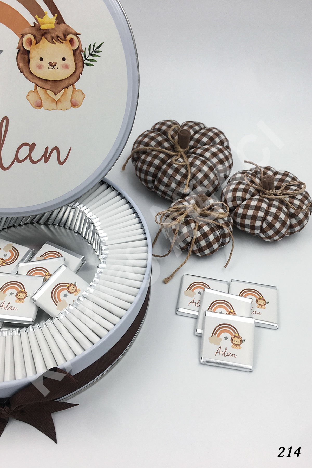 Aslanlı Gökkuşağı Metal Kutu İsme Özel Çikolata KA214