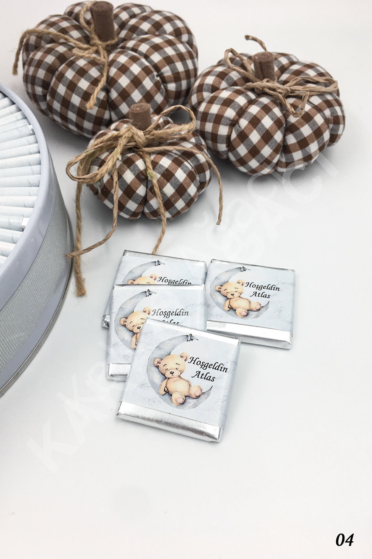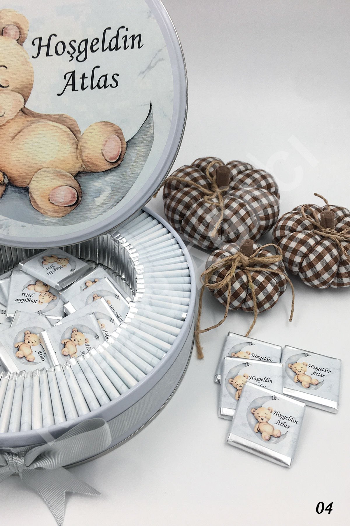 Ay Üzerinde Uyuyan Ayıcık Metal Kutu İsme Özel Çikolata KA04