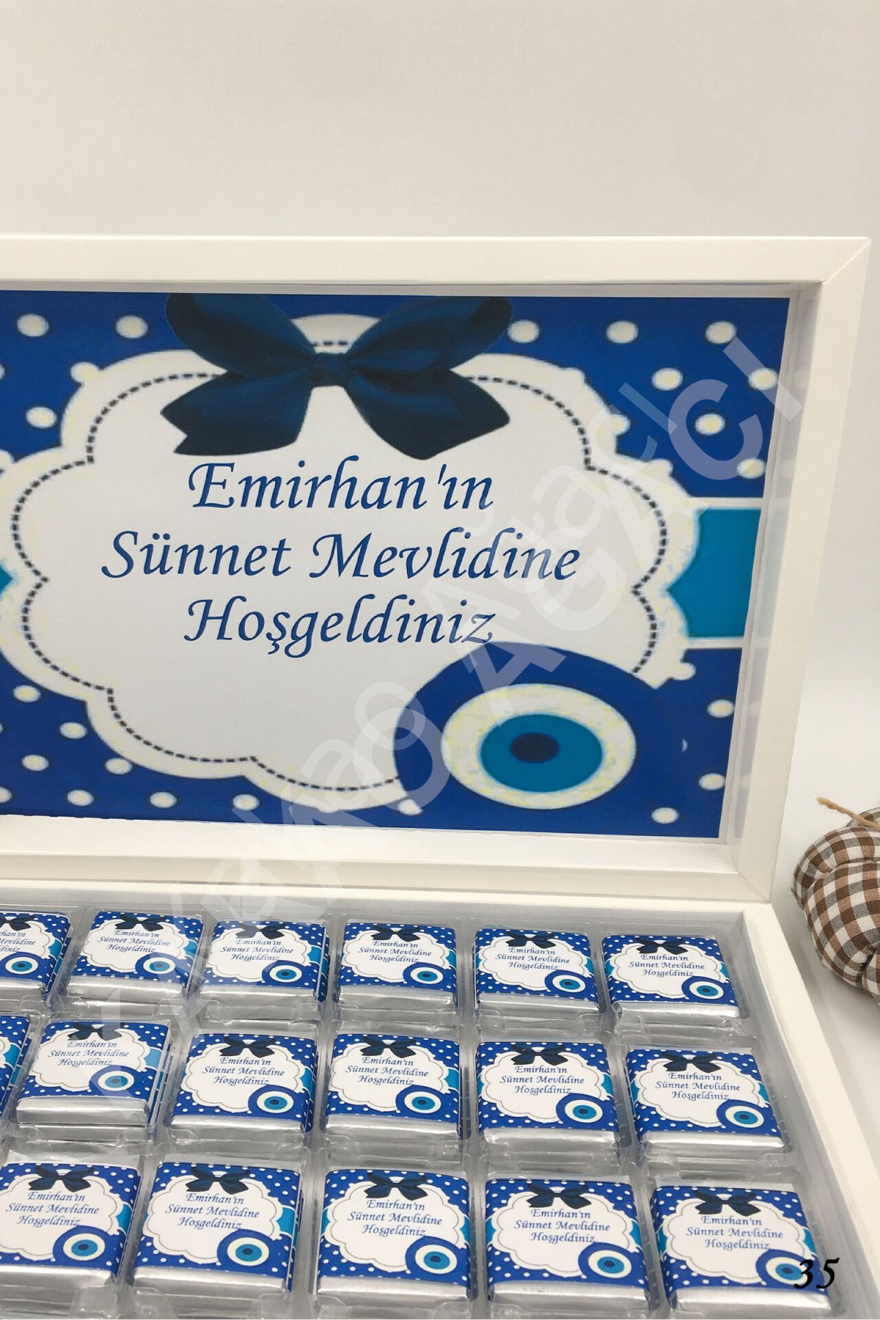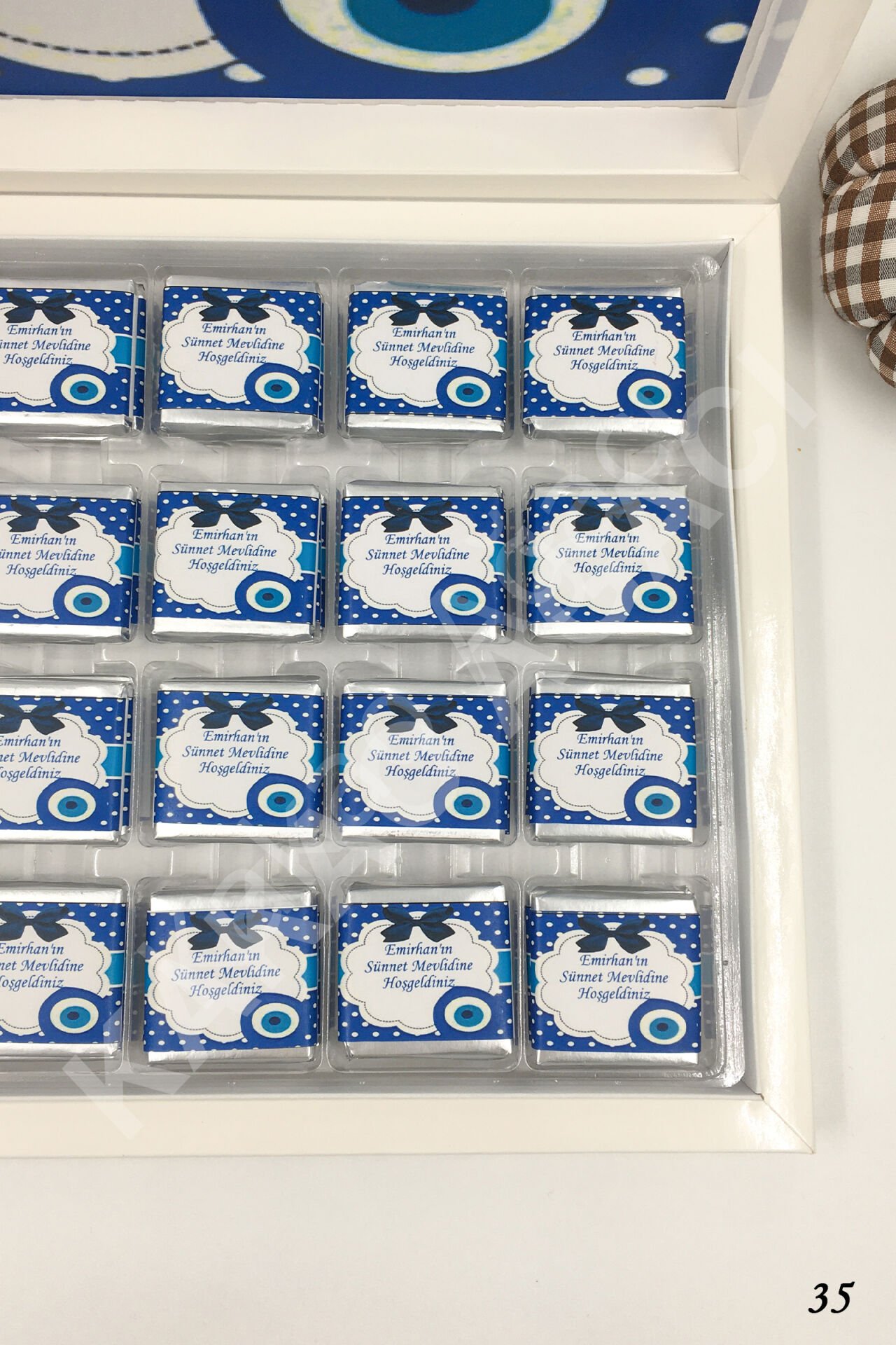 Benekli Boncuklu Karton Kutu İsme Özel Çikolata KA35