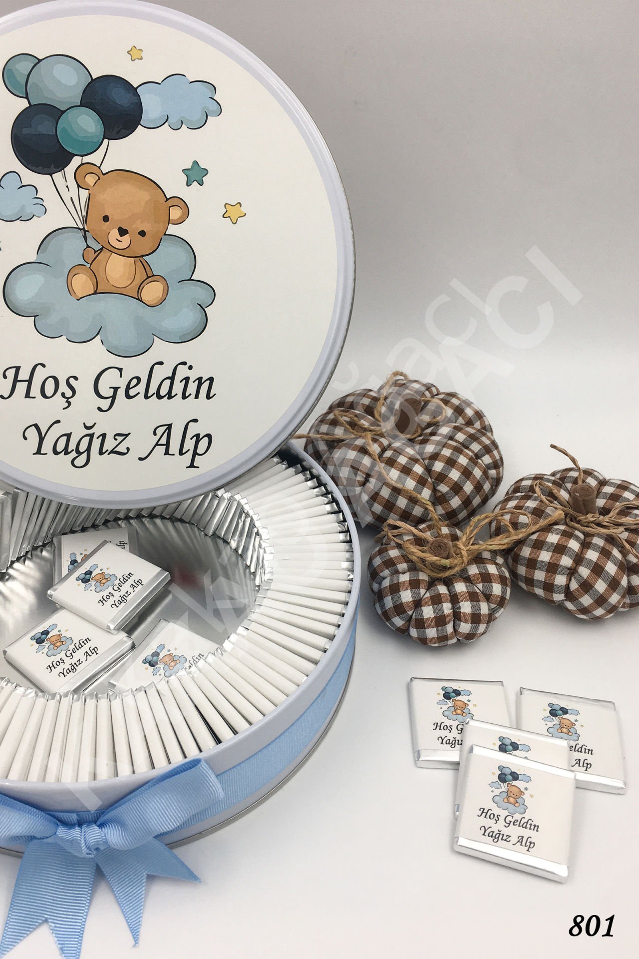 Bulut ve Balonlu Ayıcık Erkek Metal Kutu İsme Özel Çikolata KA801