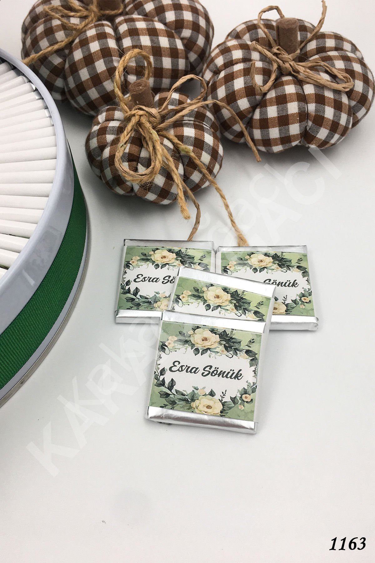 Çiçekli Gelin Bohça Metal Kutu İsme Özel Çikolata KA1163