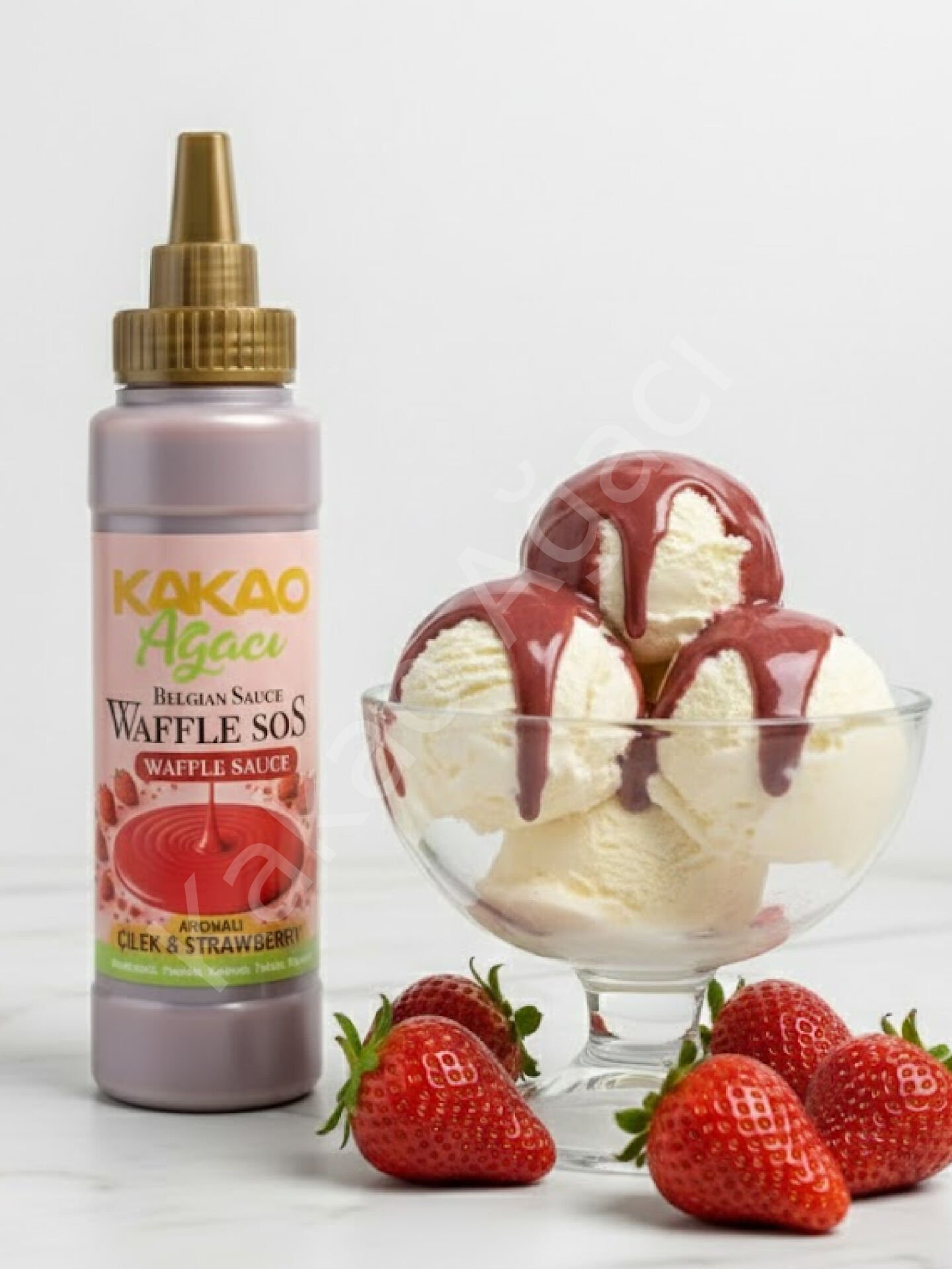 Çilek Belçika Waffle & Krep & Pankek & Tatlı & Dondurma Sosu - 300 g