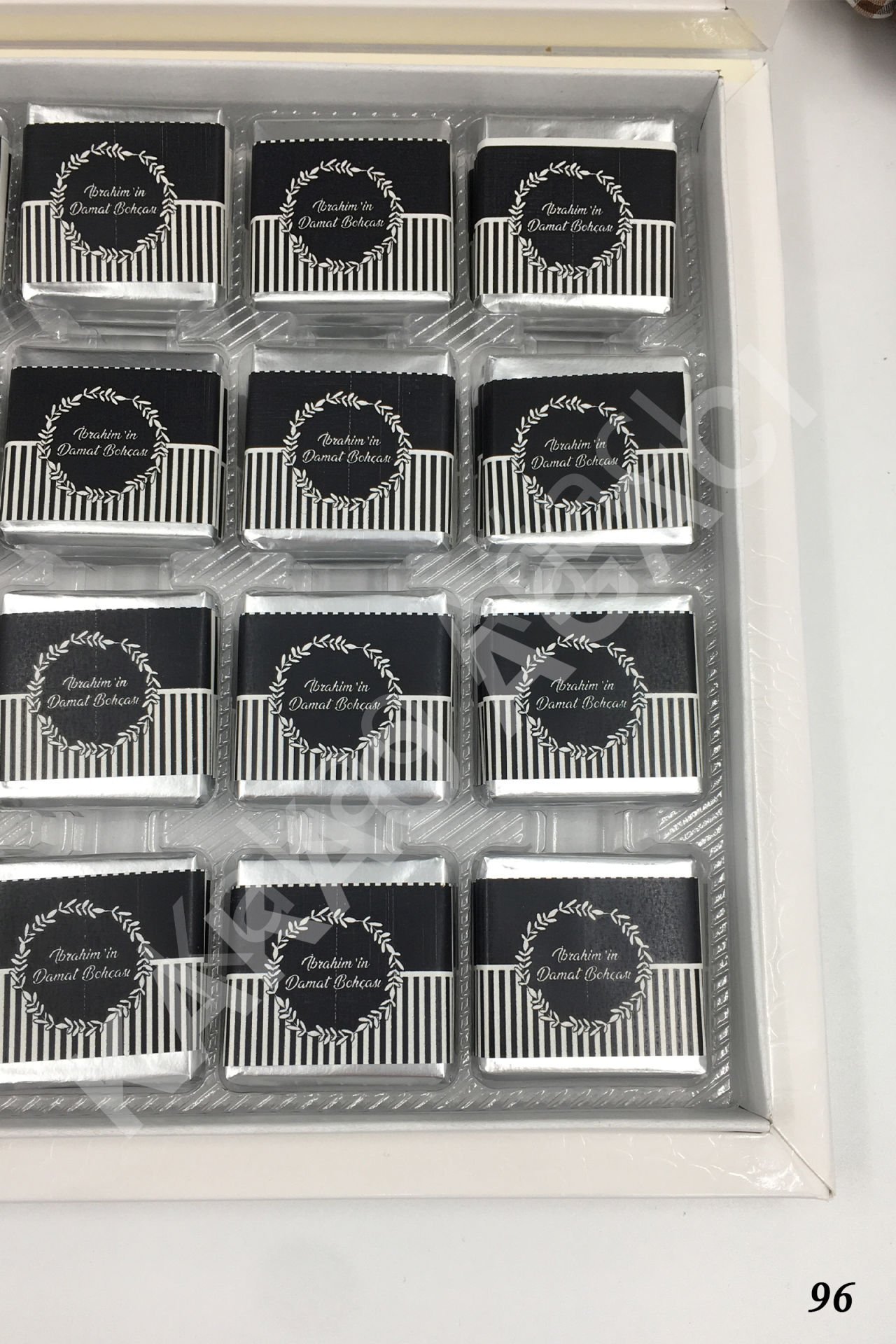 -Her bir çikolata 100 gram parlak kuşe kağıtla sarılıdır.