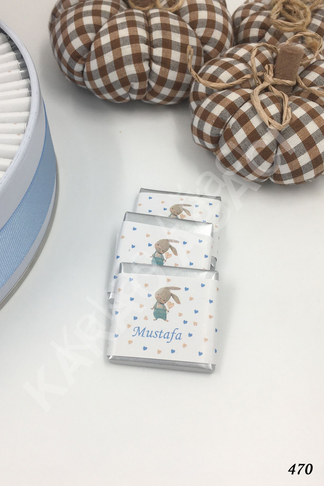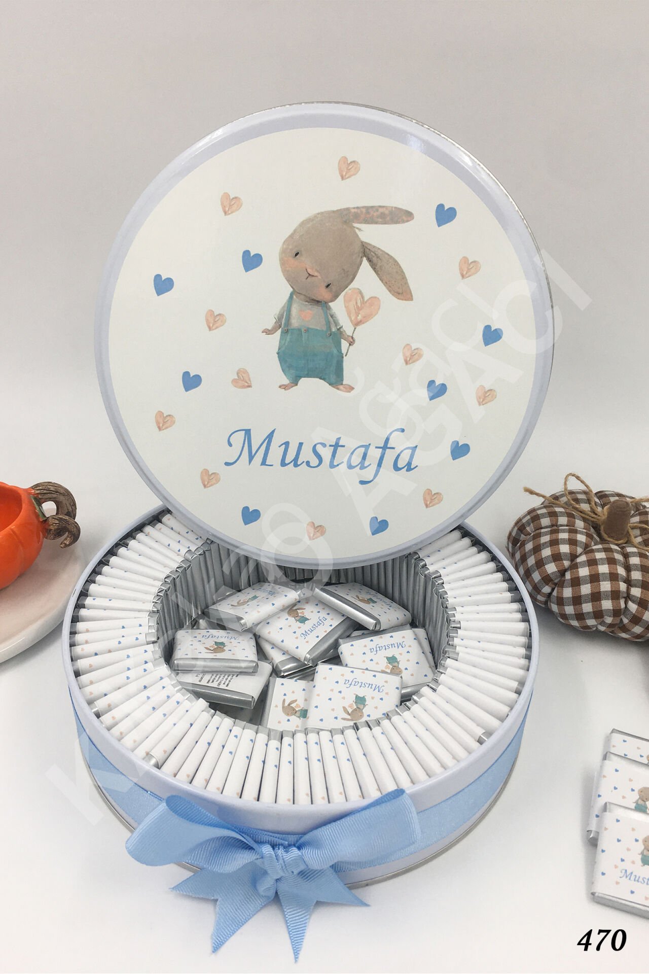 Erkek Tavşan Kalpli Metal Kutu İsme Özel Çikolata KA470