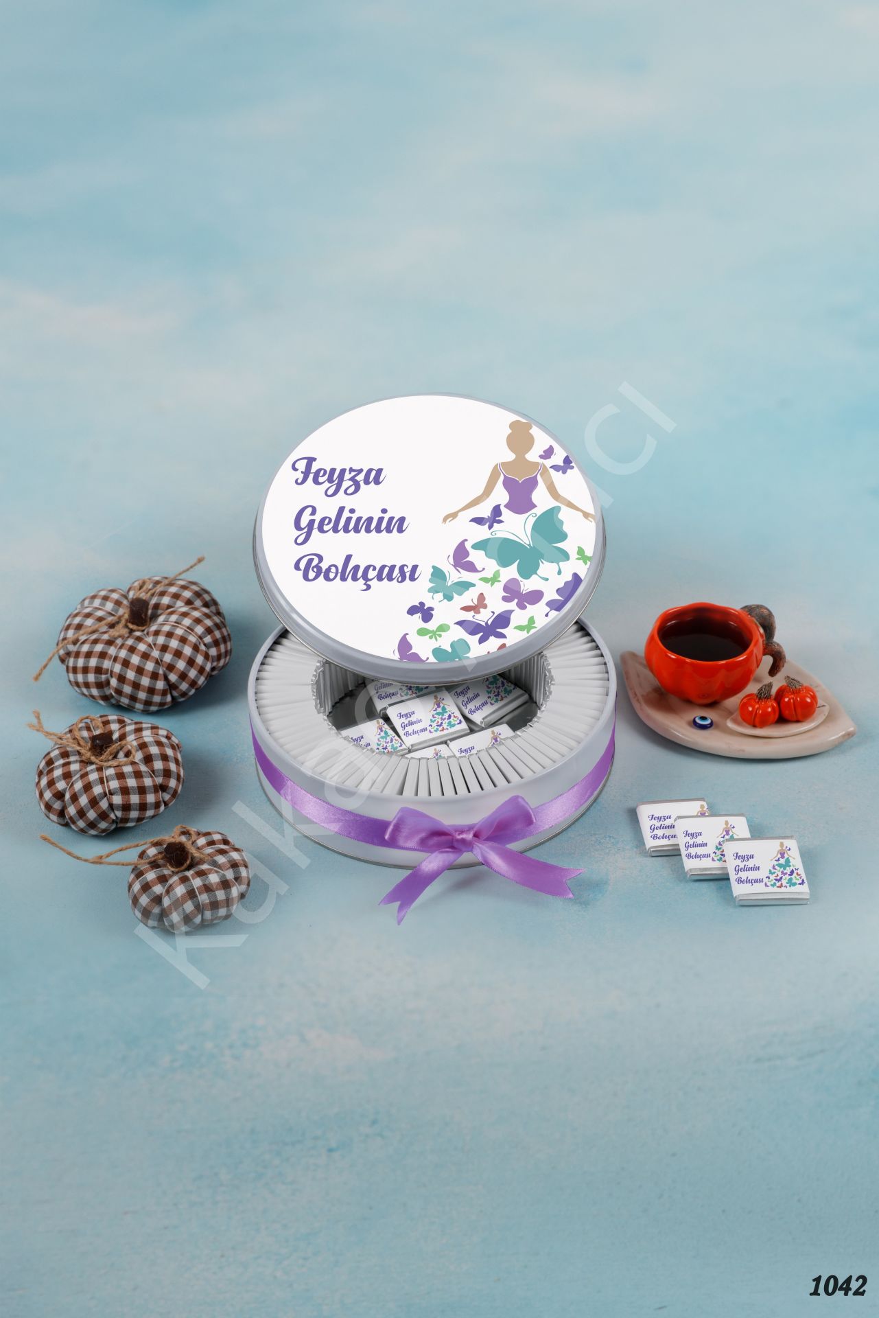 Gelin Bohçası Metal Kutu İsme Özel Çikolata KA1042