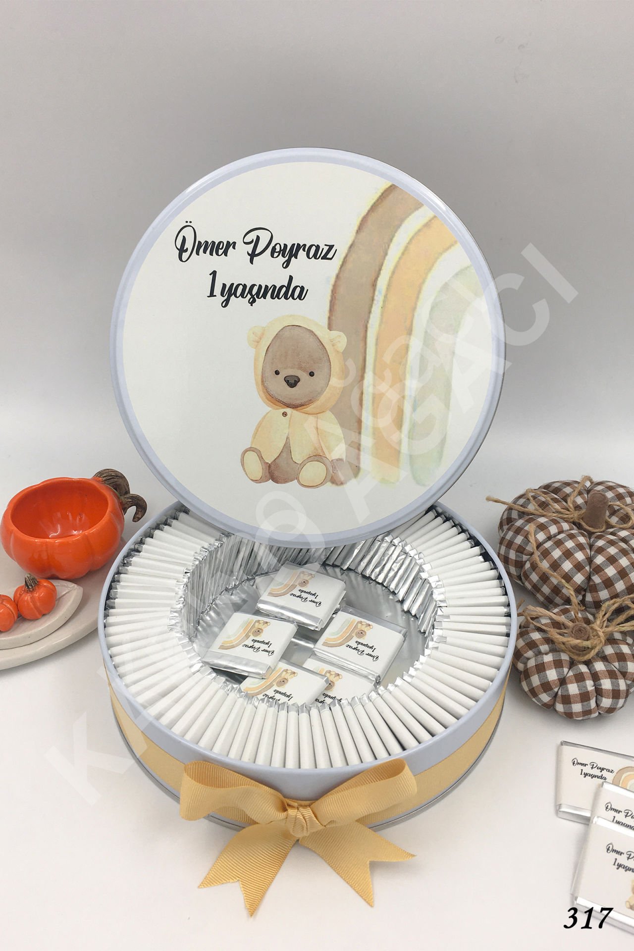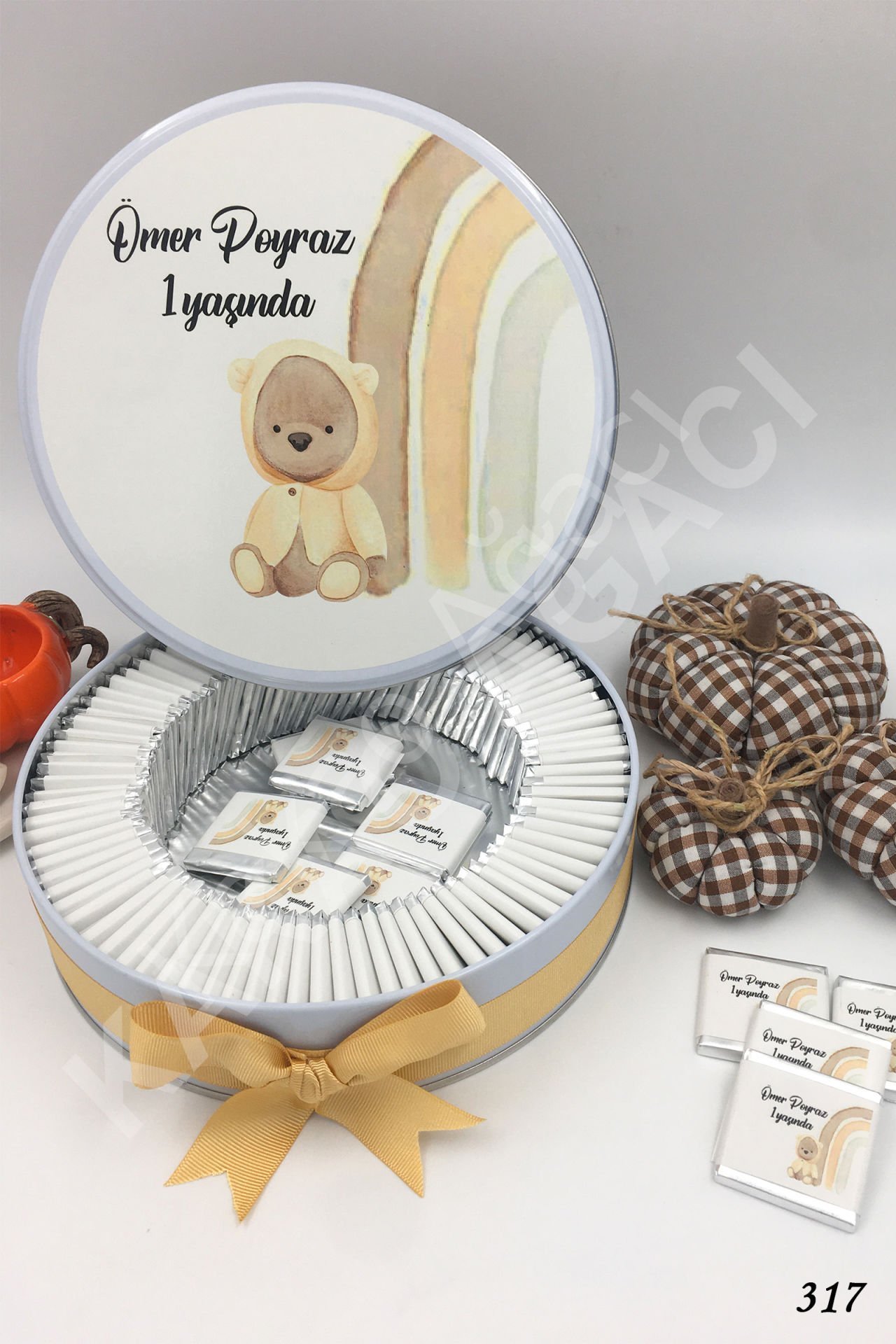 Gökkuşağı ve Ayı Yakın Metal Kutu İsme Özel Çikolata KA317