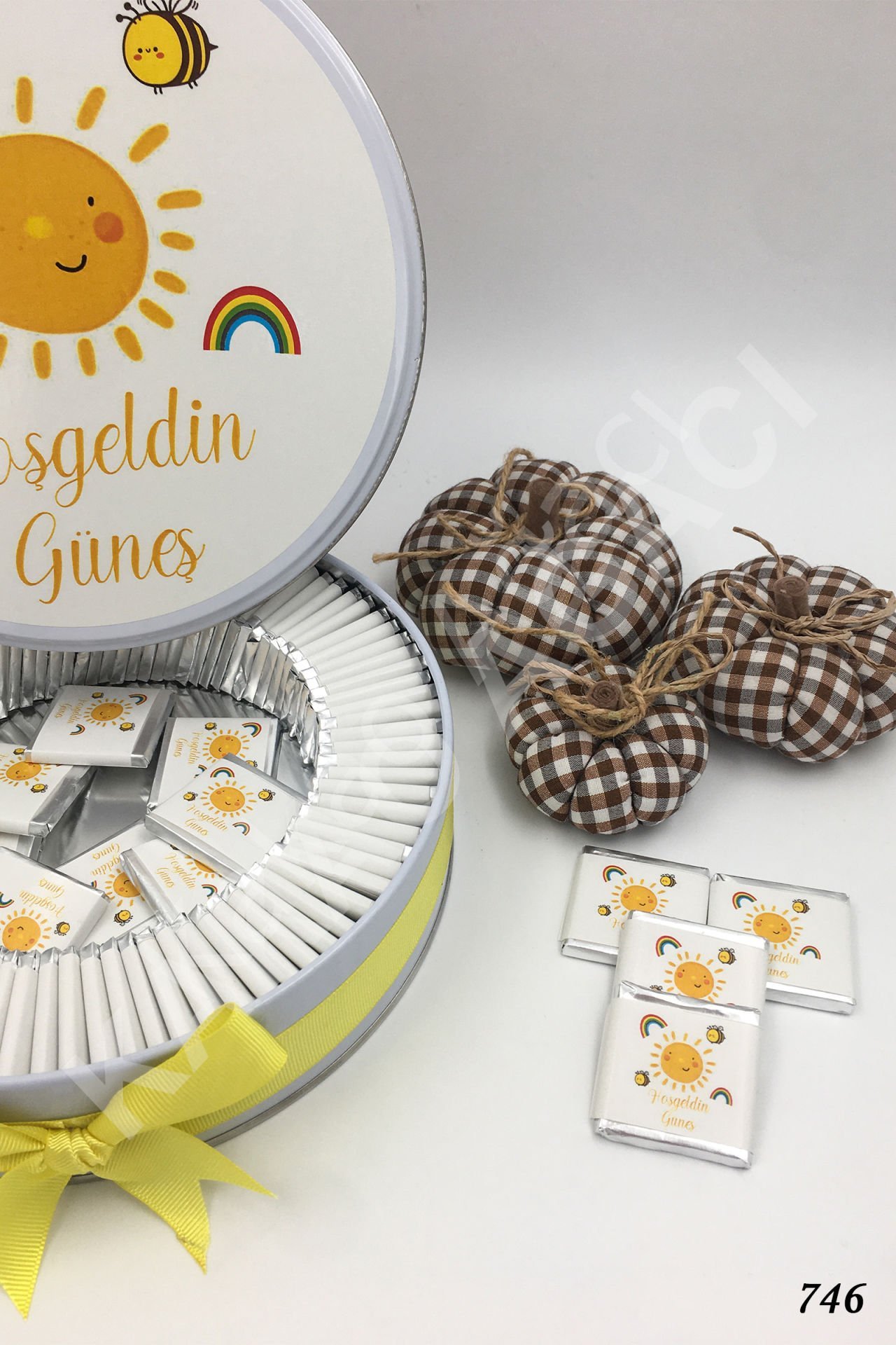 Güneş Temalı Kız Metal Kutu İsme Özel Çikolata KA746