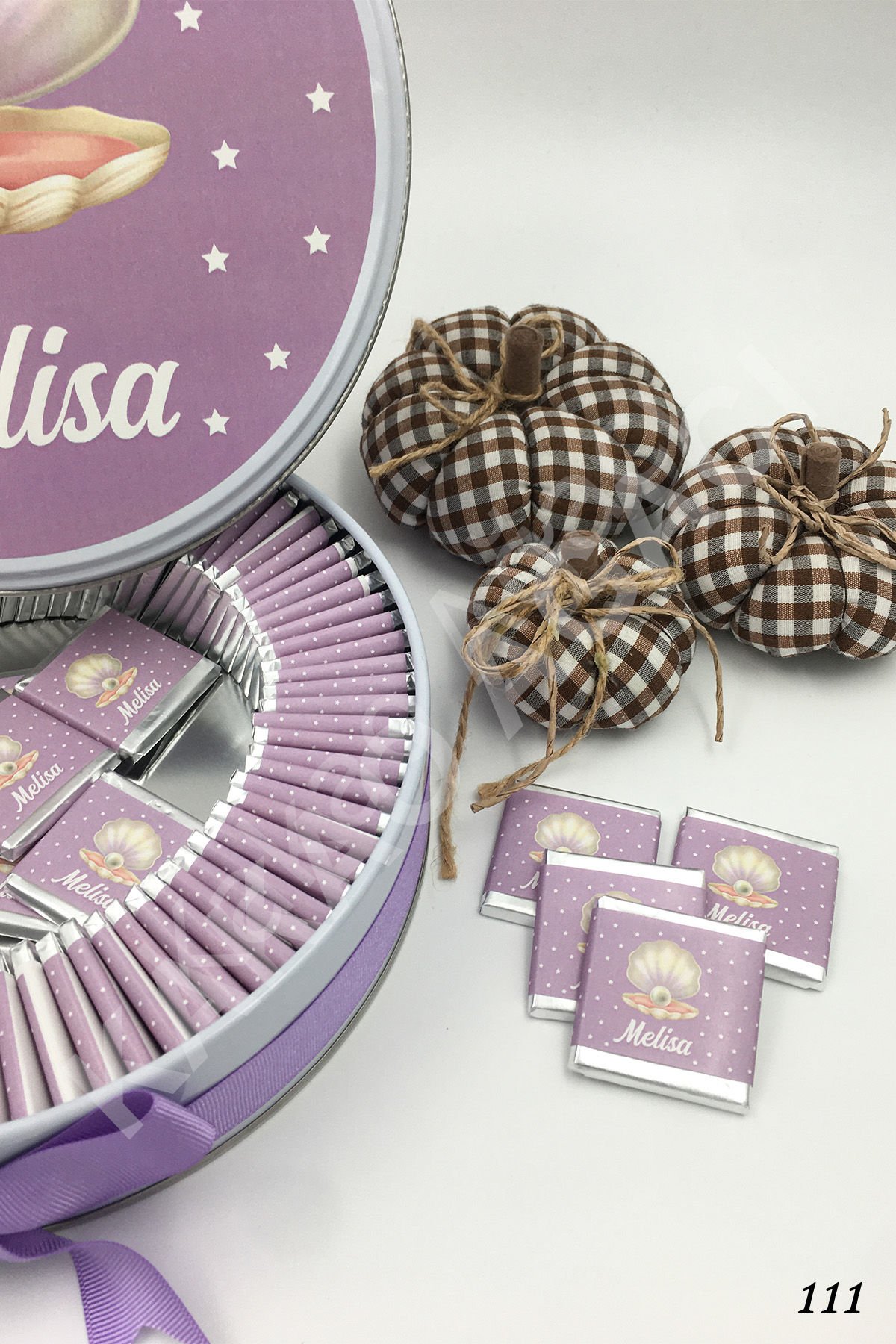 İnci Temalı Metal Kutu İsme Özel Çikolata KA111