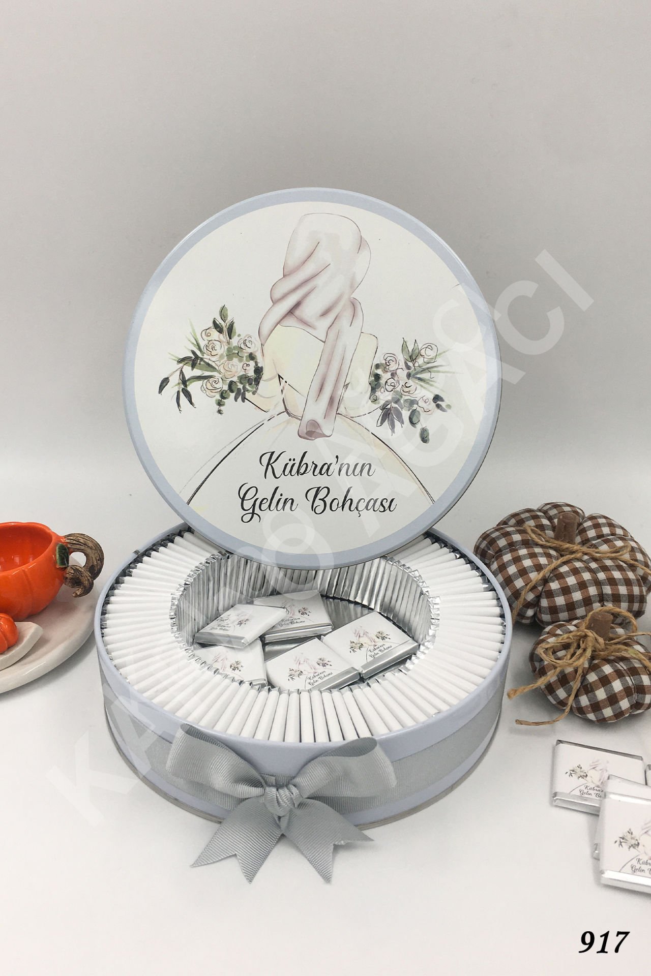 Kapalı Gelin Bohçası Metal Kutu İsme Özel Çikolata KA917