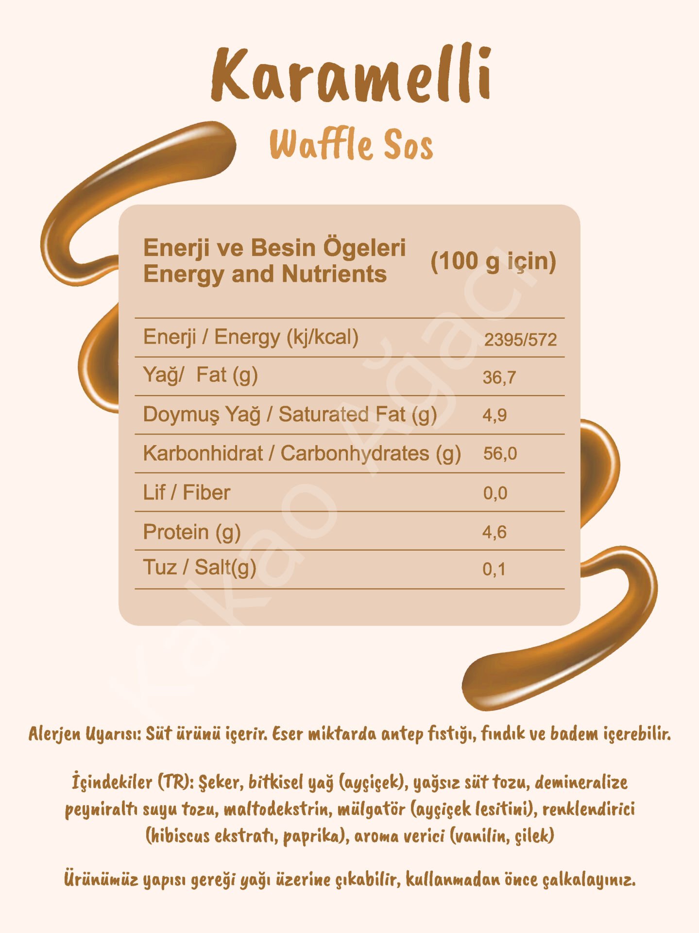 - Belçika waffle sos kalitesiyle üretilmiştir.; - Karamel sos wafflelar, krepler ve pankekler için özel olarak tasarlanmış lezzetli bir sos.; - Tatlılarınızda ve dondurmalarınızda kullanabileceğiniz, farklı lezzet katmanları sunan bir ürün.; - 300 gramlık ambalajı ile uzun süreli kullanım imkanı sağlar.;