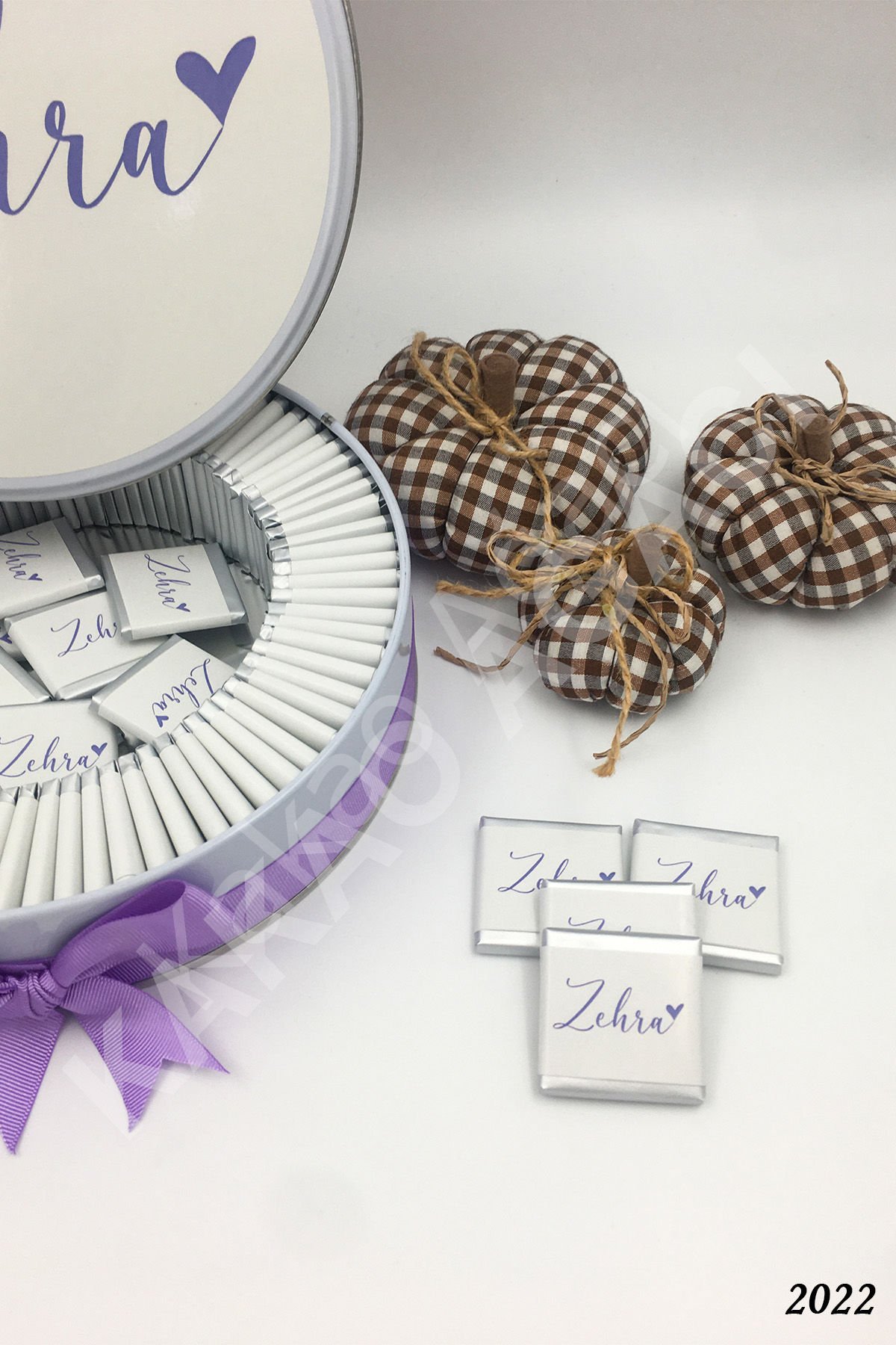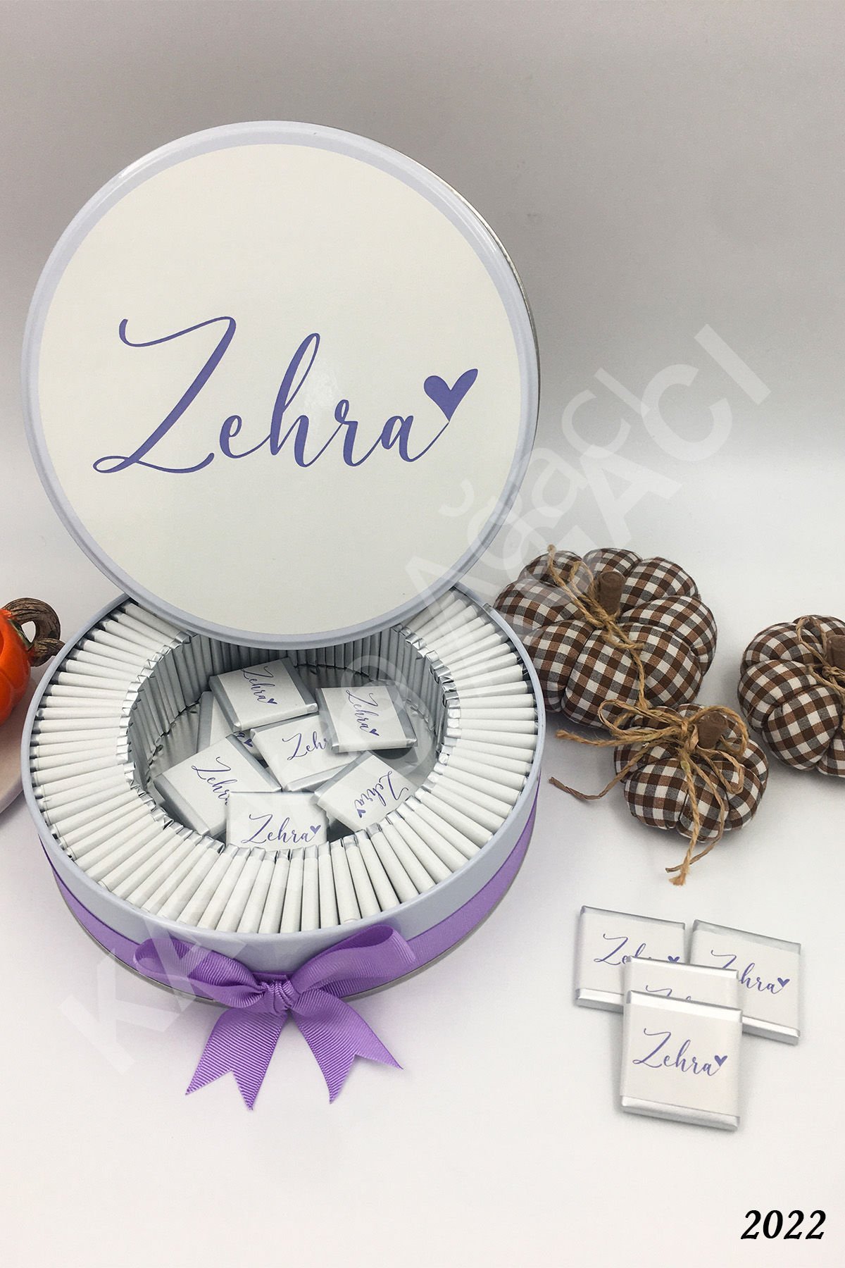 Lila Kız Kalpli Metal Kutu İsme Özel Çikolata KA2022