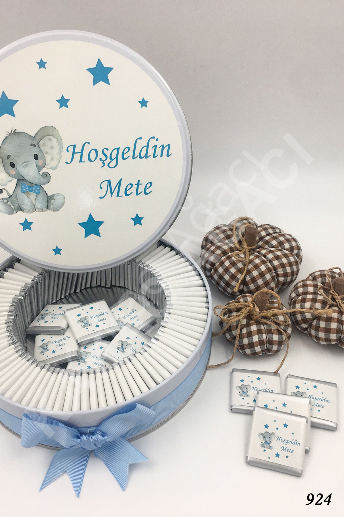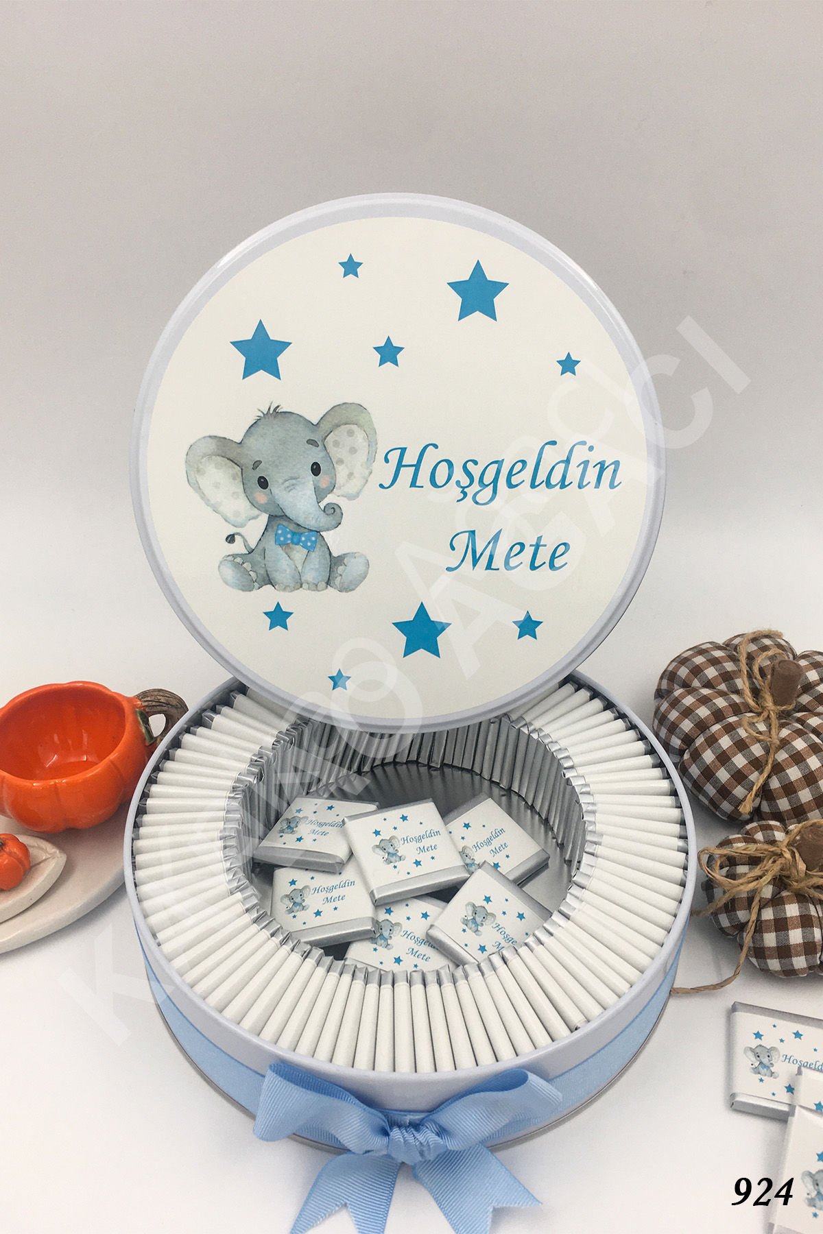Mavi Filli & Yıldızlı Metal Kutu İsme Özel Çikolata KA924