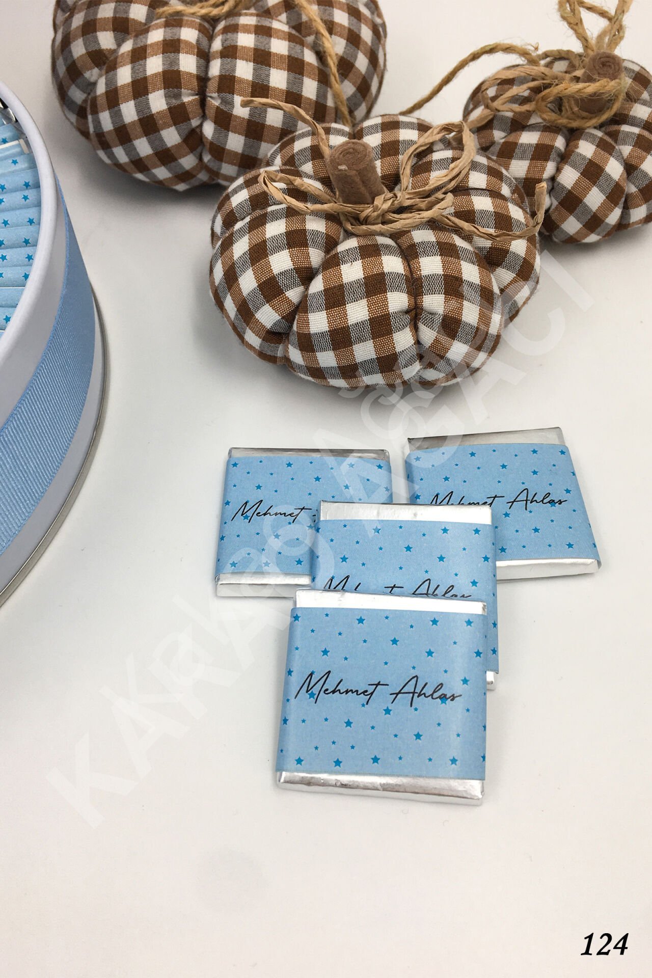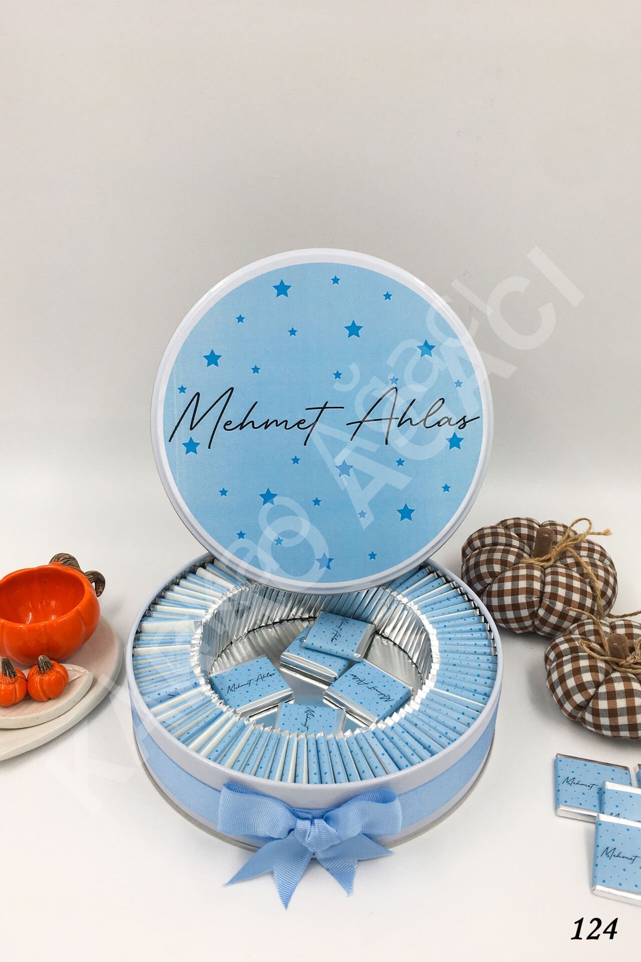 Mavi Kalpli Metal Kutu İsme Özel Çikolata KA124