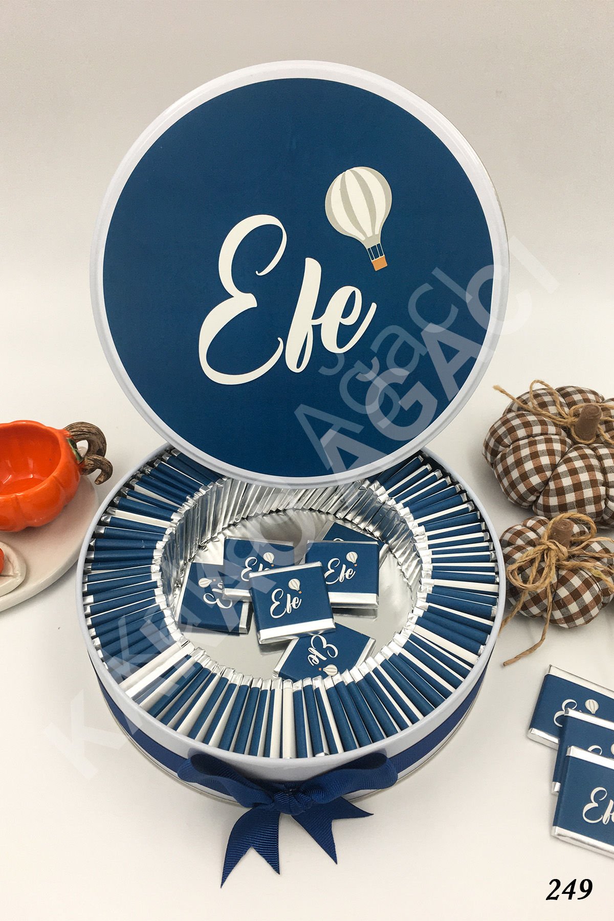 Mavi Temalı Balonlu Metal Kutu İsme Özel Çikolata KA249