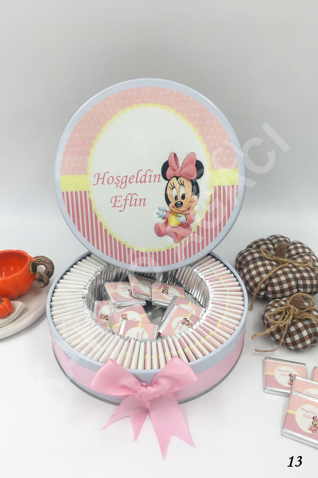 Minnie Mouse Metal Kutu İsme Özel Çikolata KA13