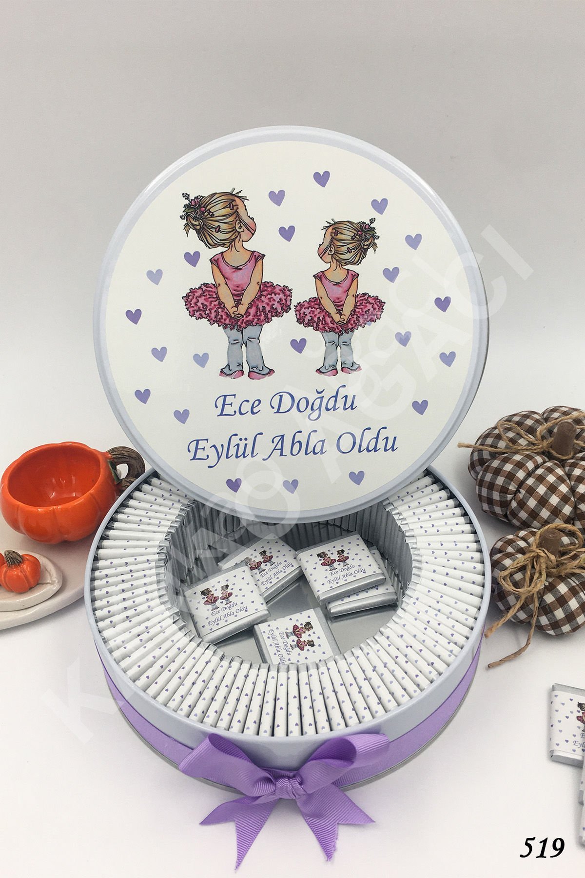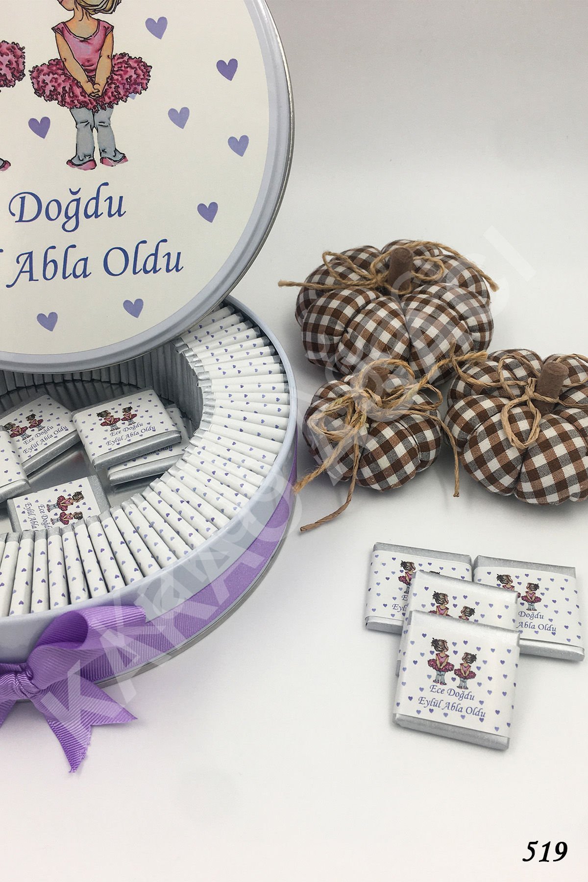 Mor 2 Balerinli Metal Kutu İsme Özel Çikolata KA519