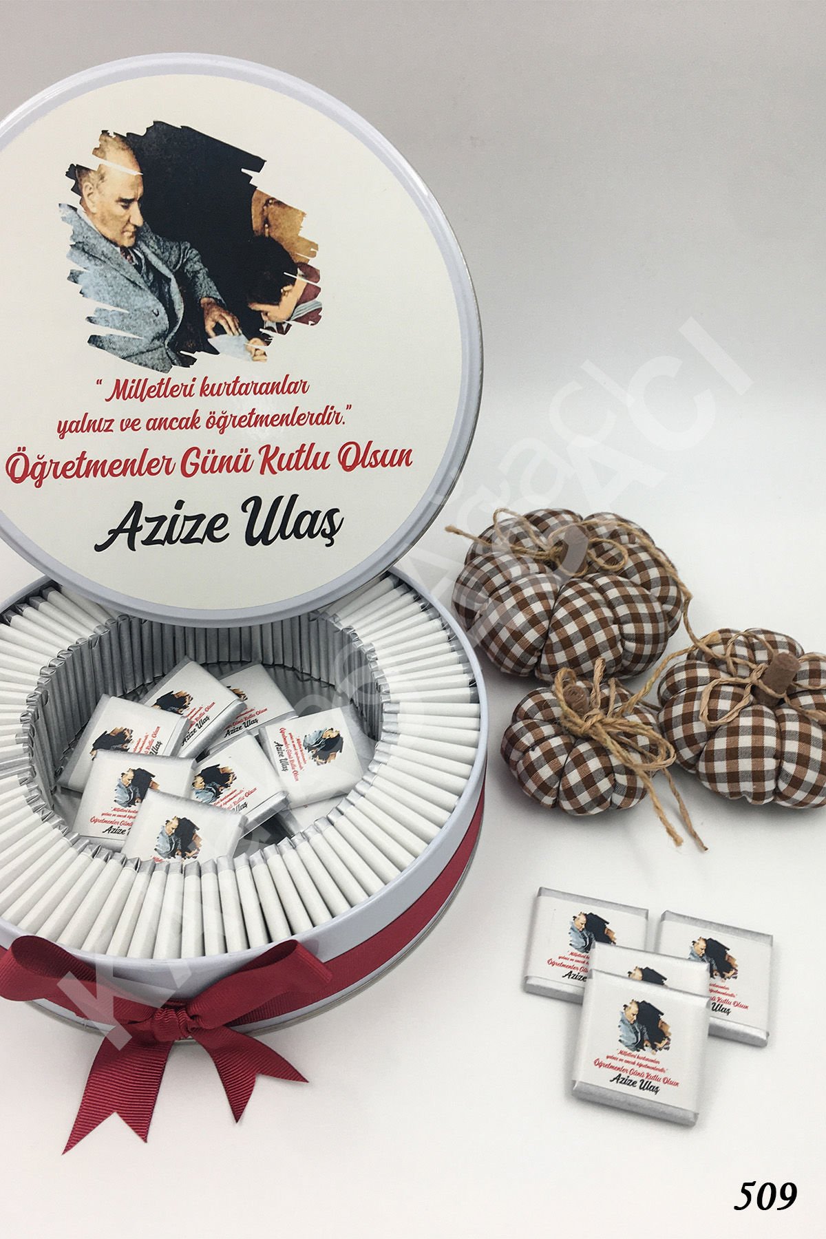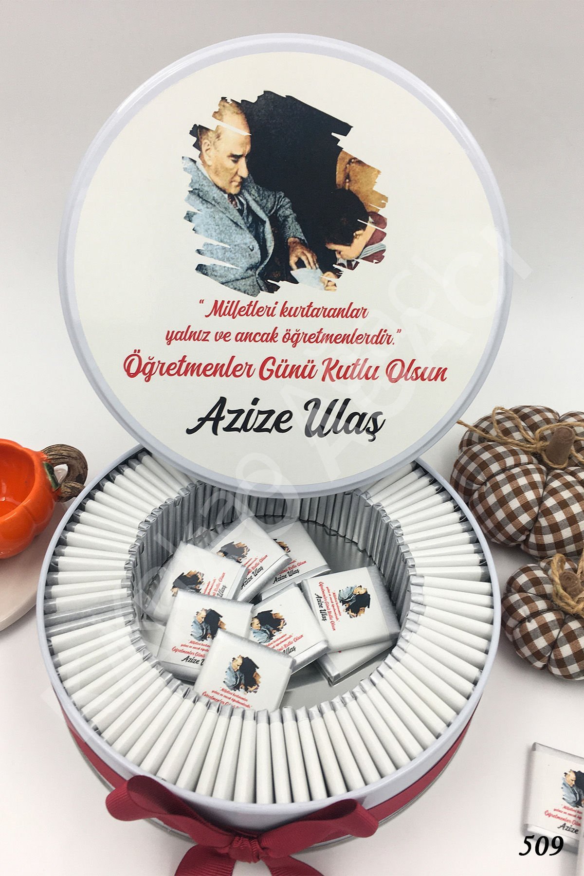 Öğretmenler Günü Atatürk Metal Kutu İsme Özel Çikolata KA509