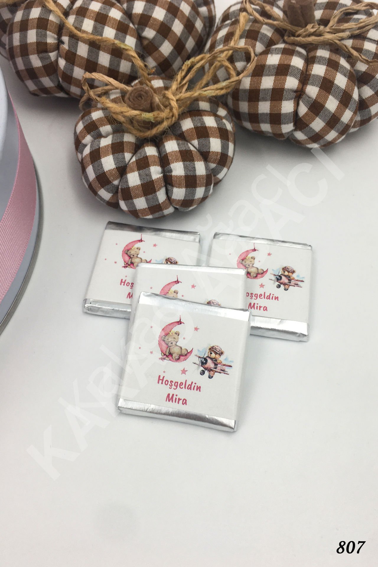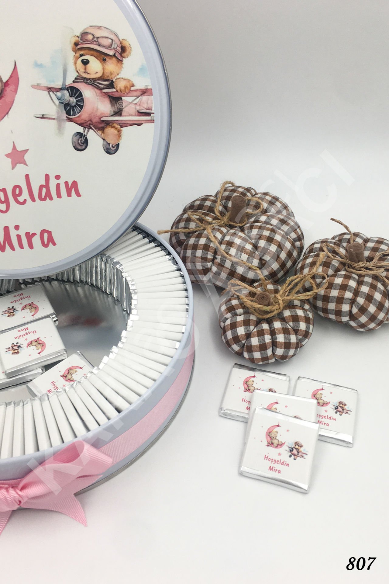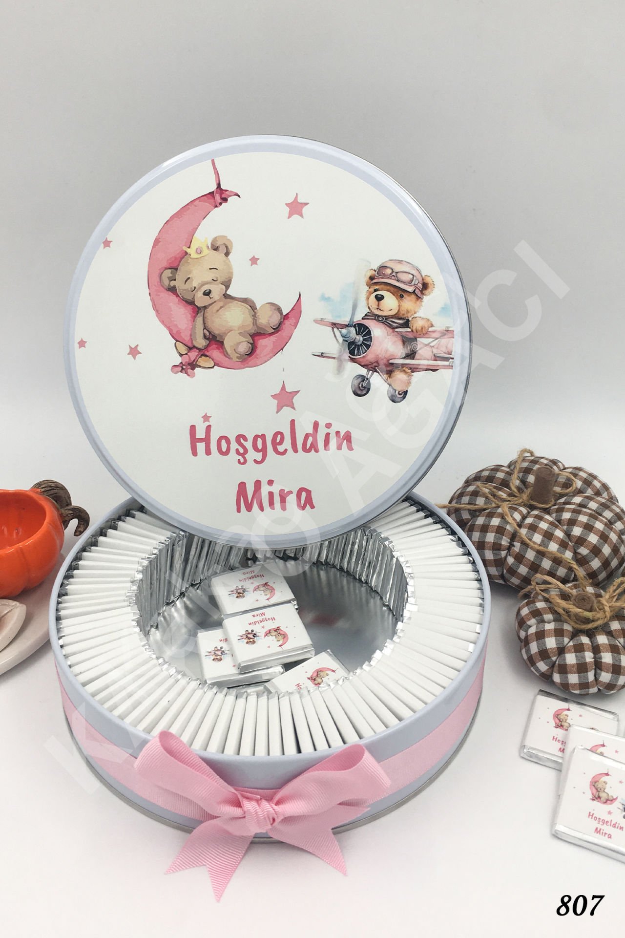 Pembe Ayıcıklı Metal Kutu İsme Özel Çikolata KA807