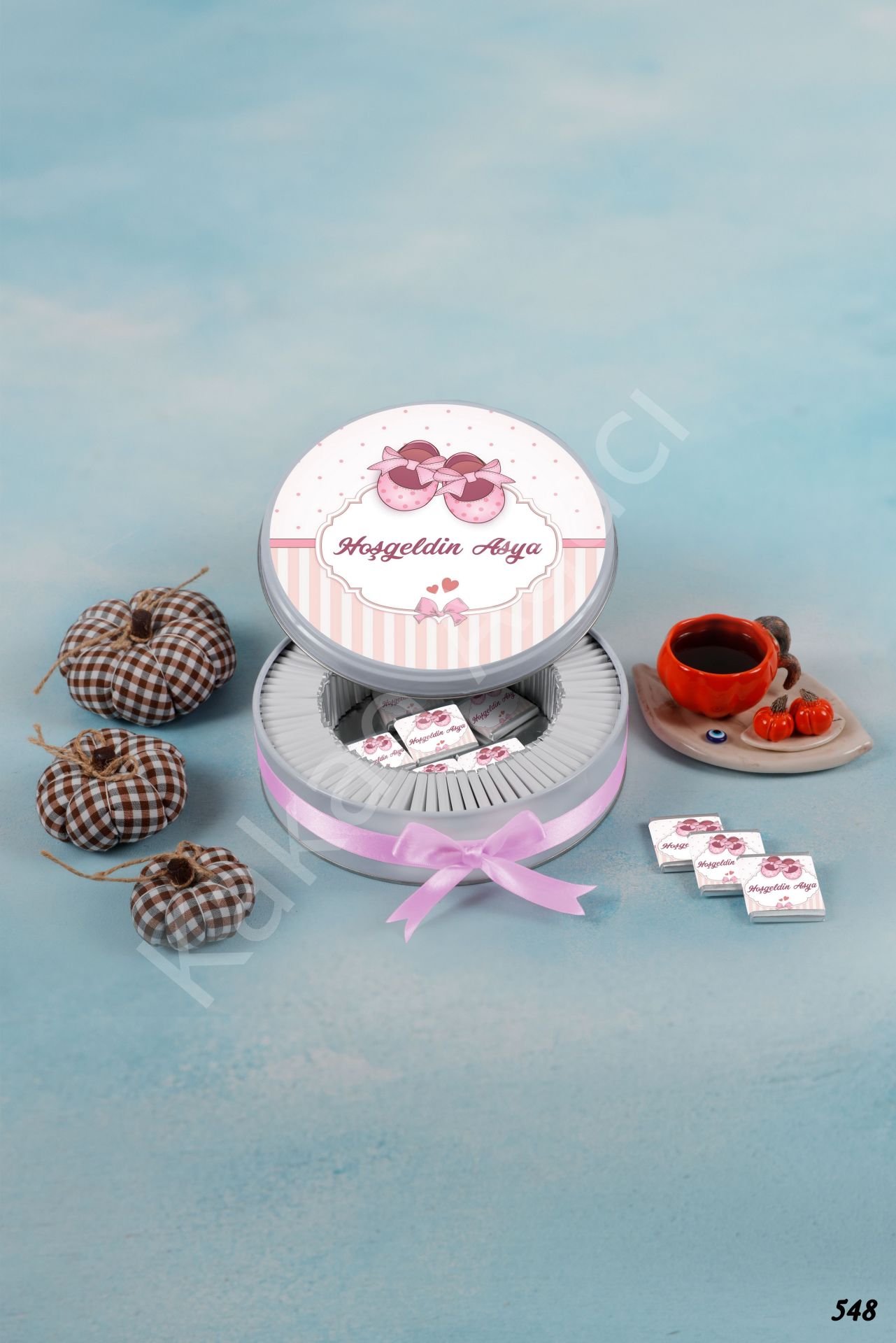 Pembe Bebek Ayakkabılı Metal Kutu İsme Özel Çikolata KA548