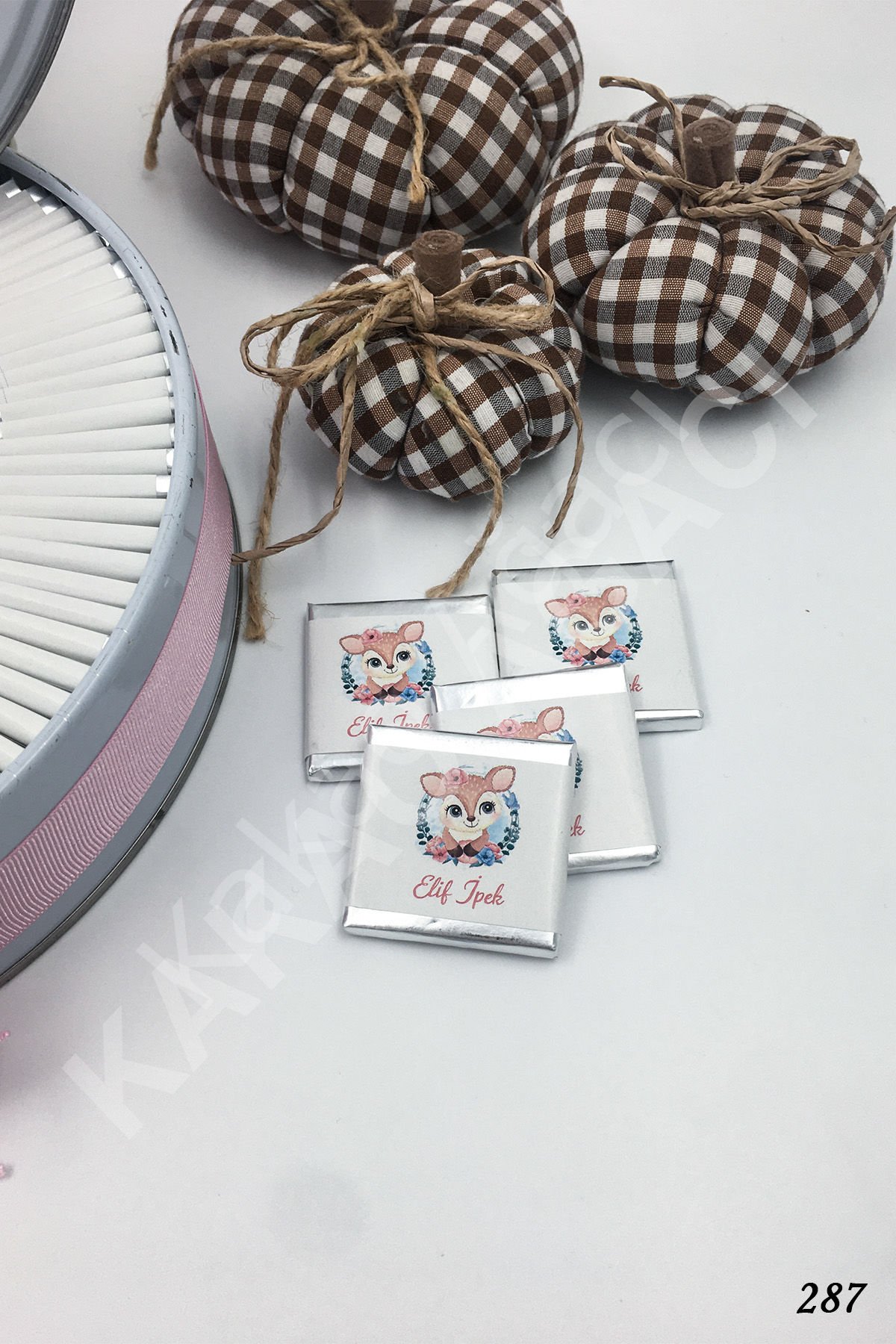Pembe Çiçekli Ceylan Metal Kutu İsme Özel Çikolata KA287