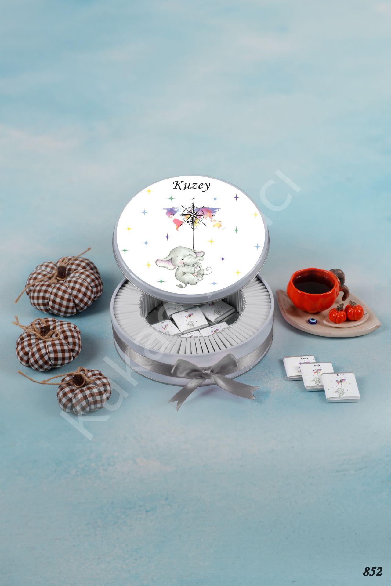Pusula ve Fil Metal Kutu İsme Özel Çikolata KA852