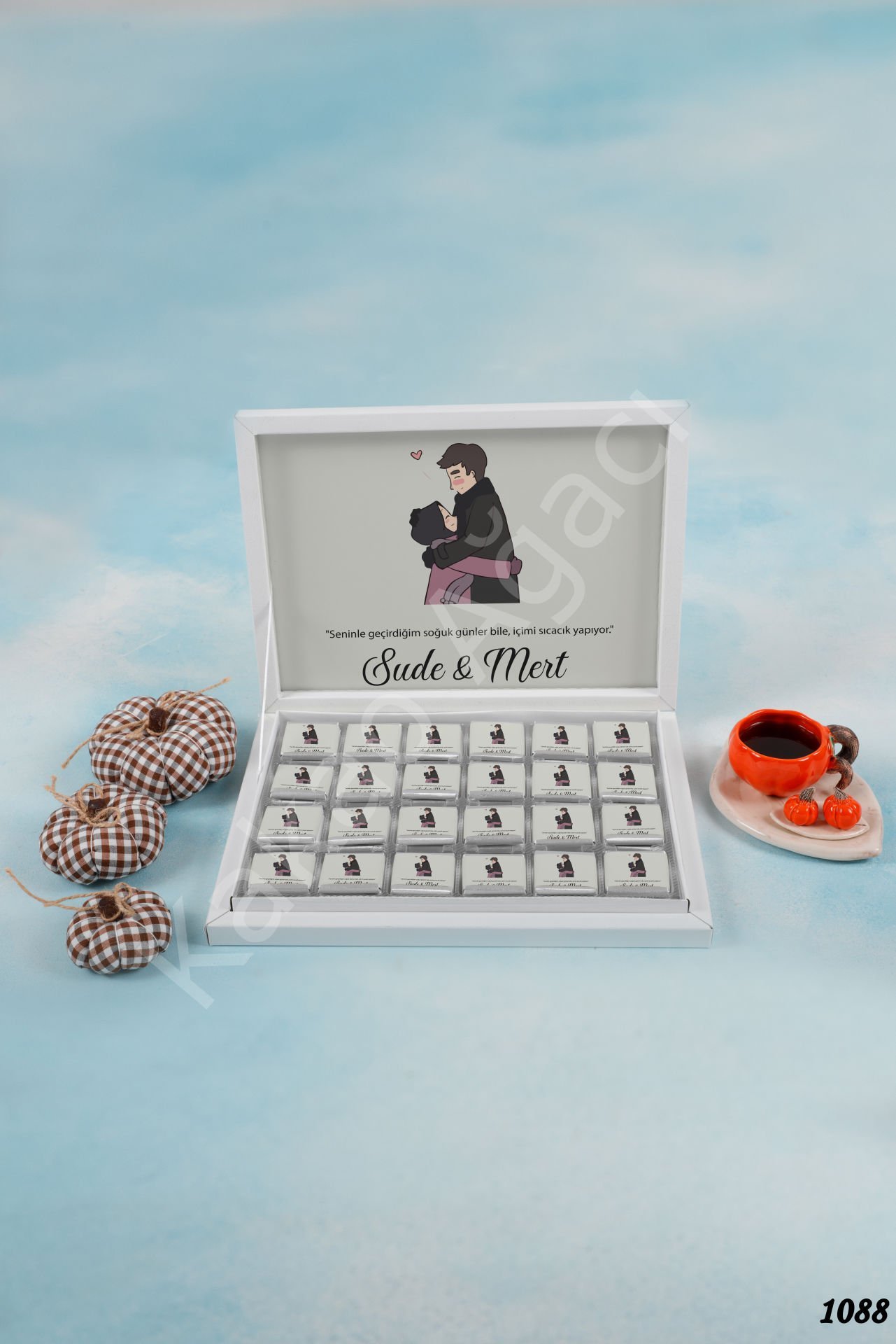 Sarılan Sevgililer Özlü Sözlü Karton Kutu Çikolata KA1088