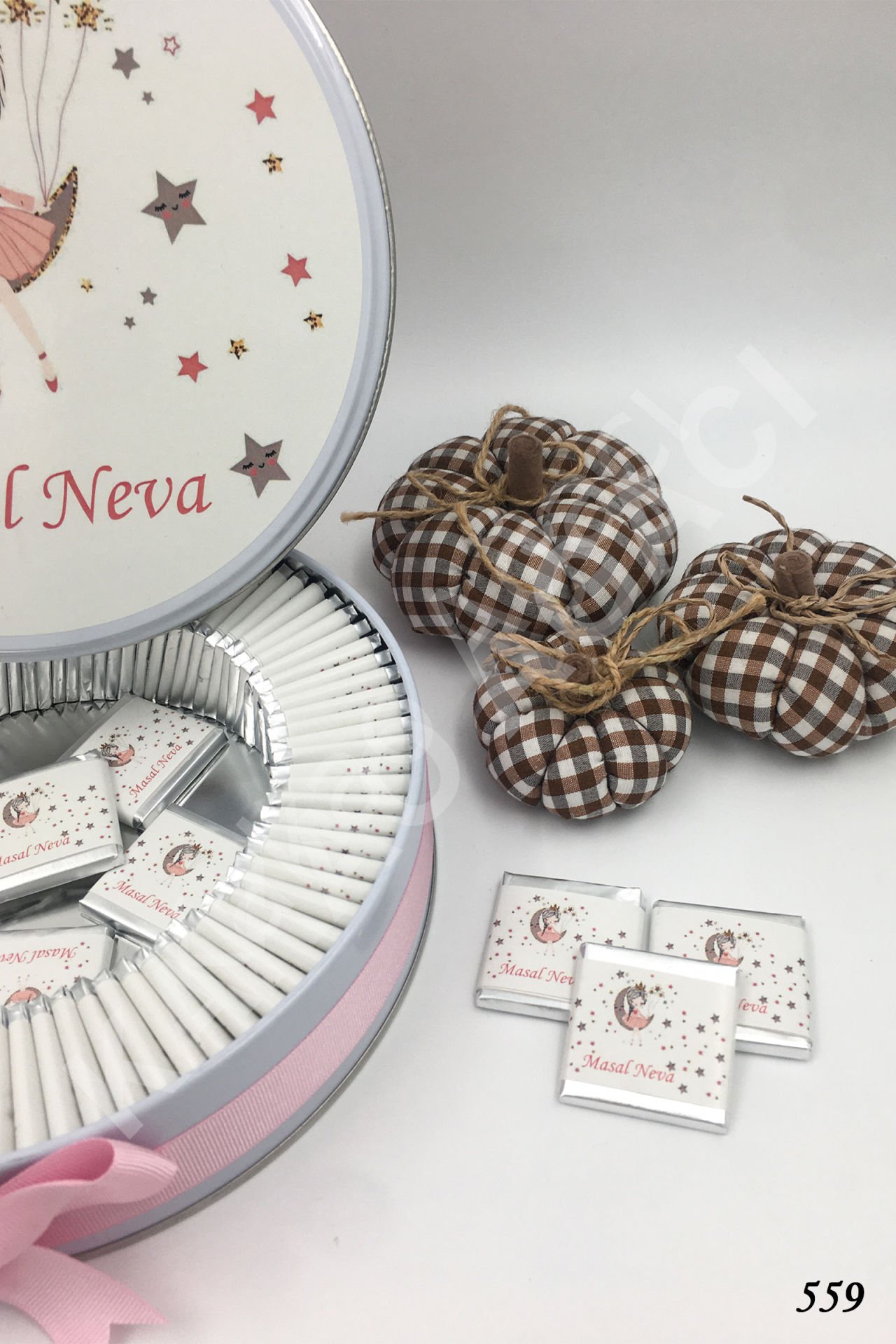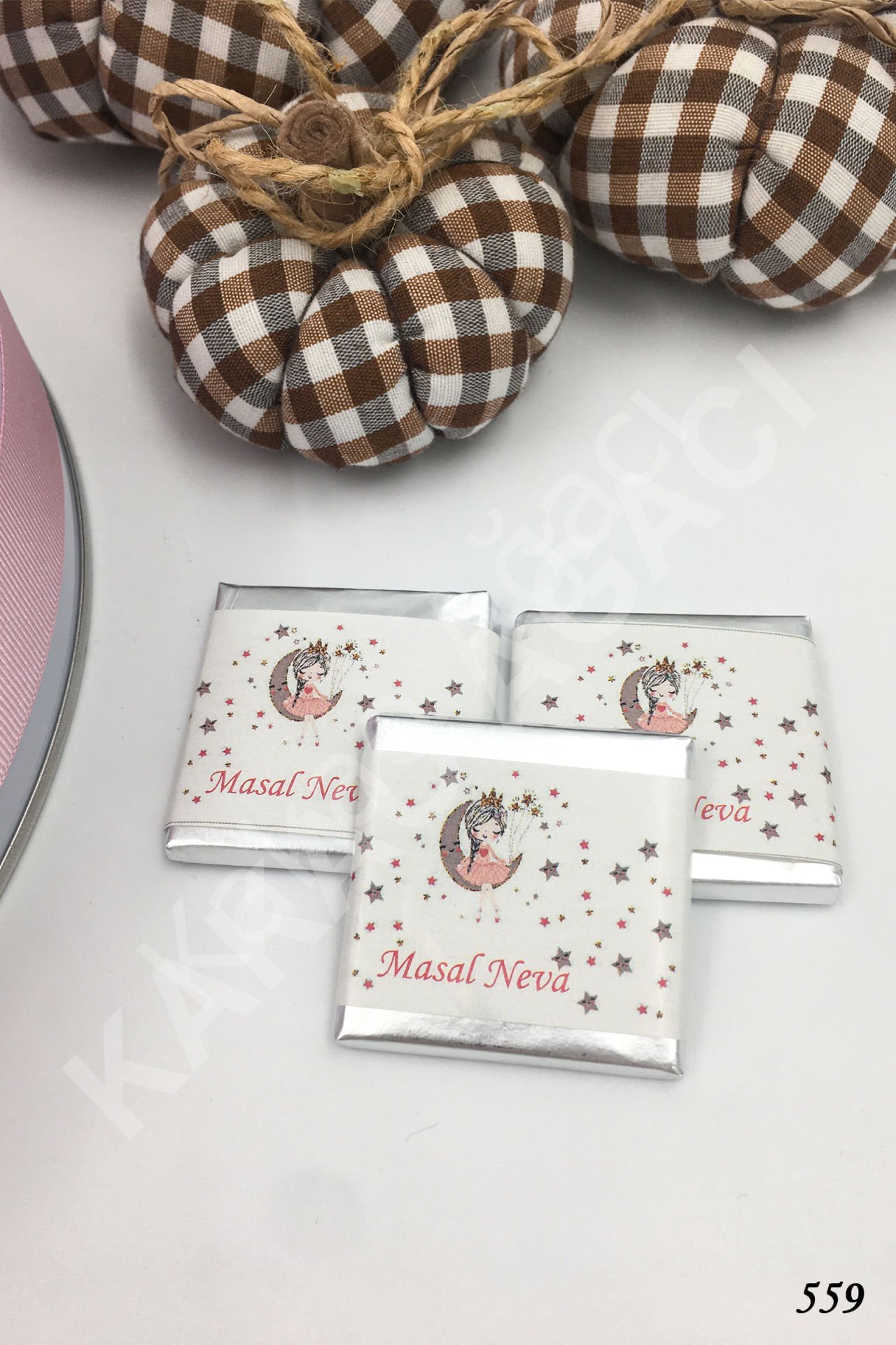 Yıldızlı Ay ile Prenses Metal Kutu İsme Özel Çikolata KA559