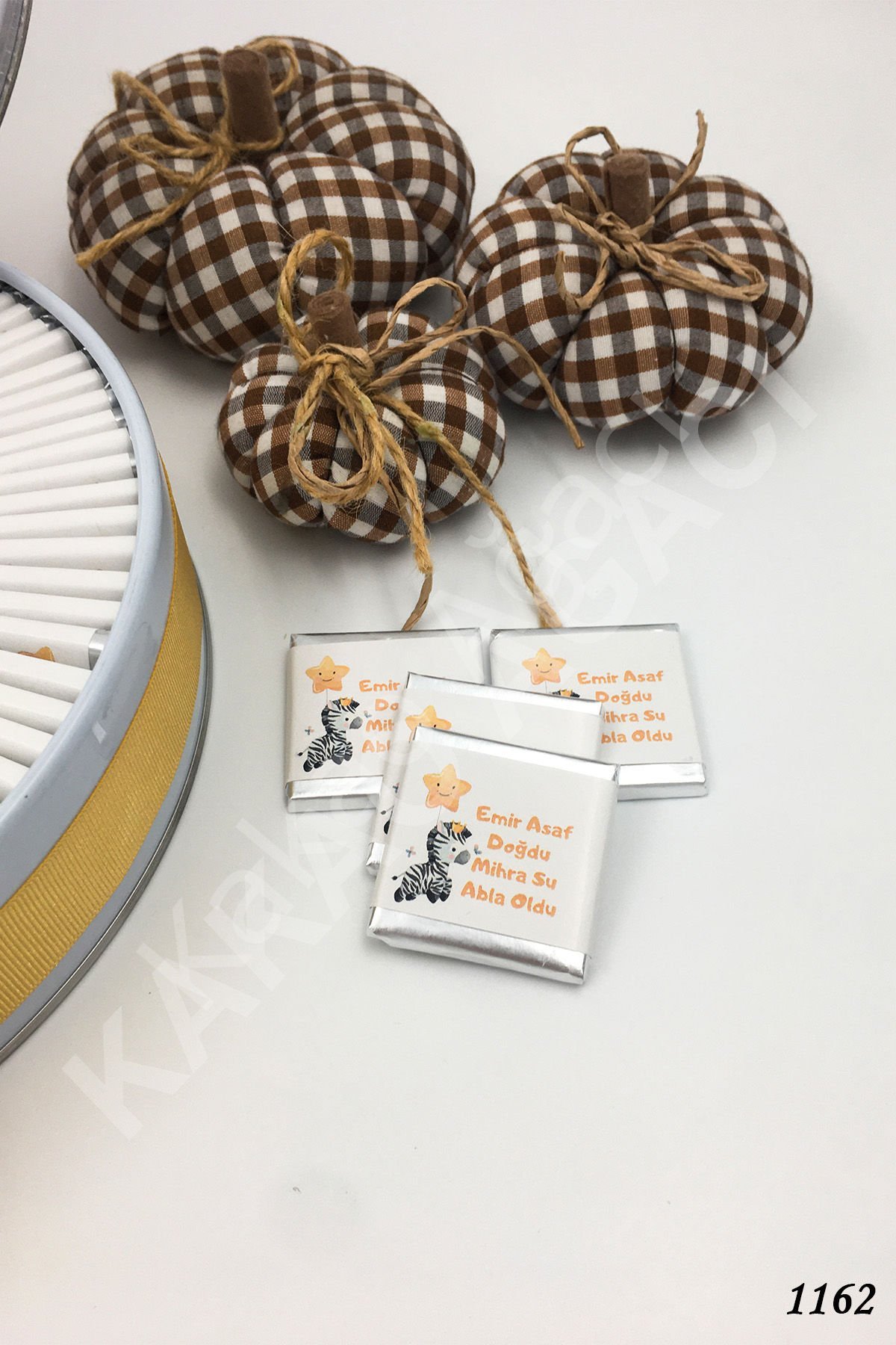 Zebralı Çocuk Bebek Metal Kutu İsme Özel Çikolata KA1162